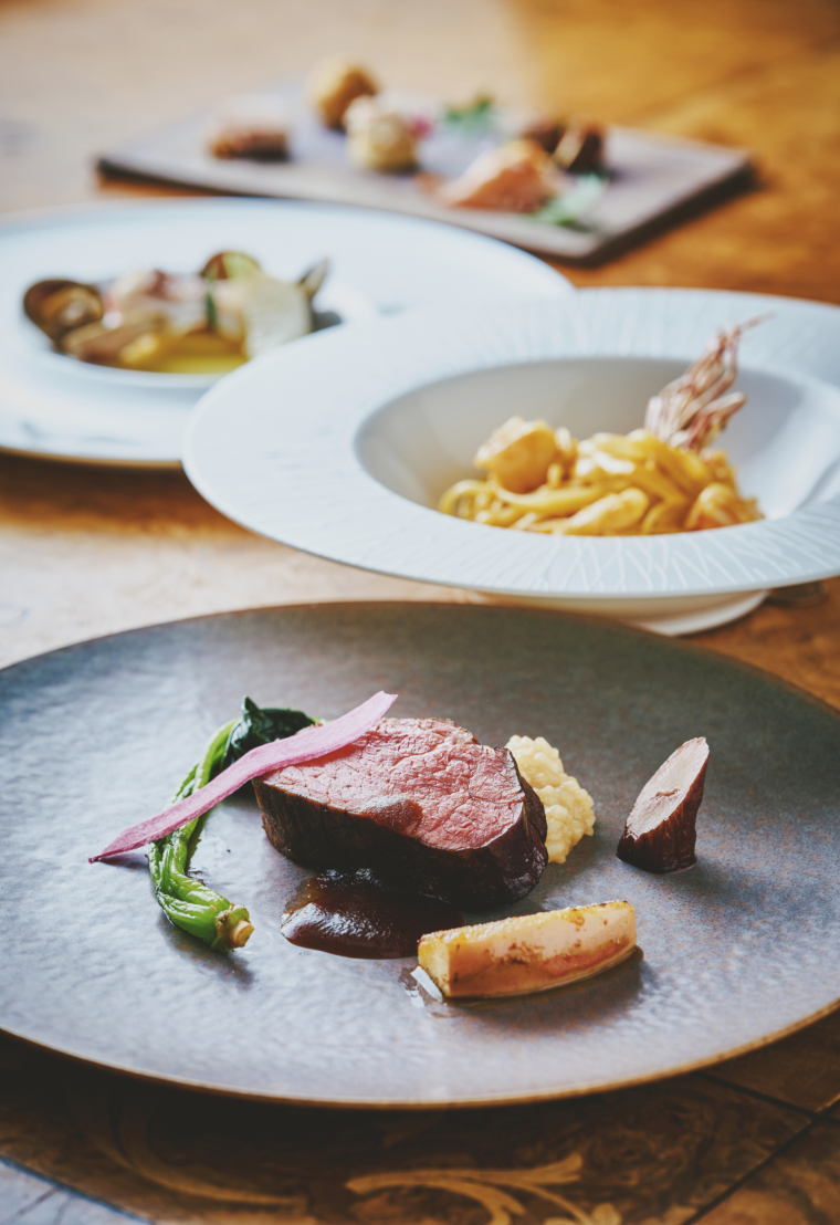 フレンチとイタリア料理を融合させ、素材本来の特徴を最大限に活かした料理を創作する「Grand Baobab」では、秋の旬食材を多彩に織り込み、香ばしい炭火焼の鮮魚やイザナミ黒牛の薪焼といった力強いメイン料理から、季節の果実をアレンジしたデザートまで、晩秋の淡路島を味覚で表現。