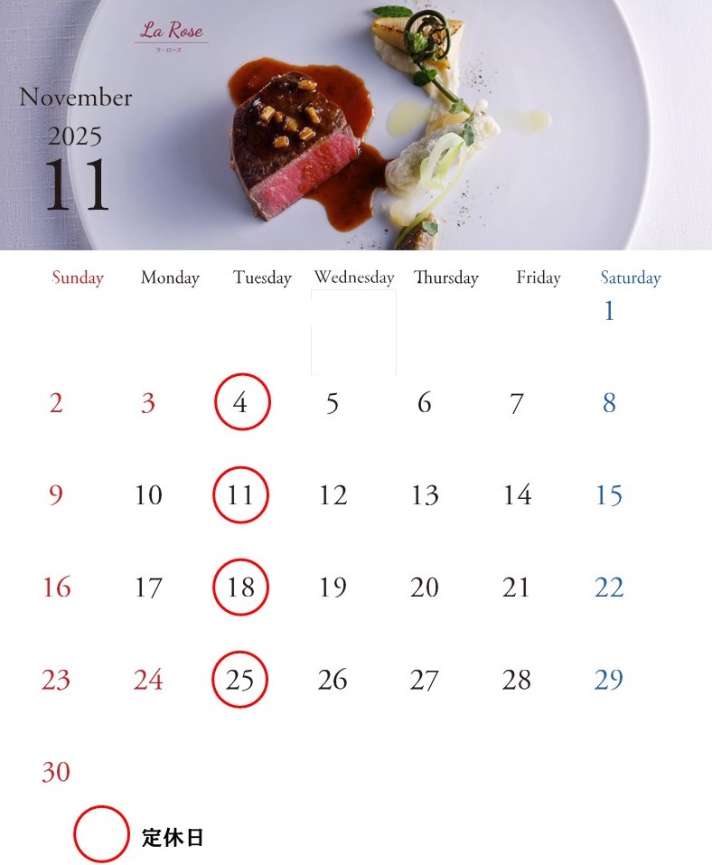 11月最終週より冬季臨時休業日を設けてございますので、営業日カレンダーにてご確認ください。