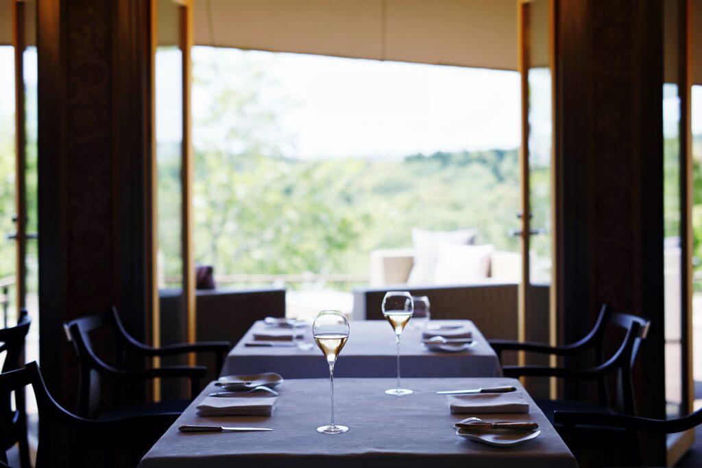 「La Rose」の内観は、豪華さだけを追求したものではありません。それは、淡路島の自然、シェフが創り出す一皿、そして大切な人との会話が主役になるように、丁寧に調和された空間です。