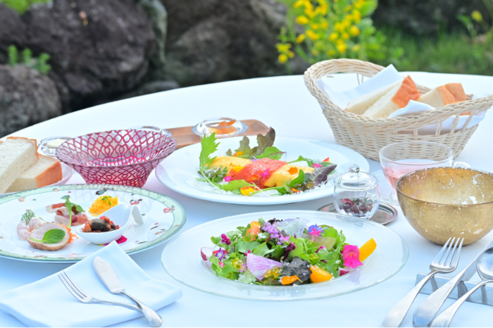 まるでお花畑のようなサラダなどボタニカルな朝食をお愉しみいただけます。